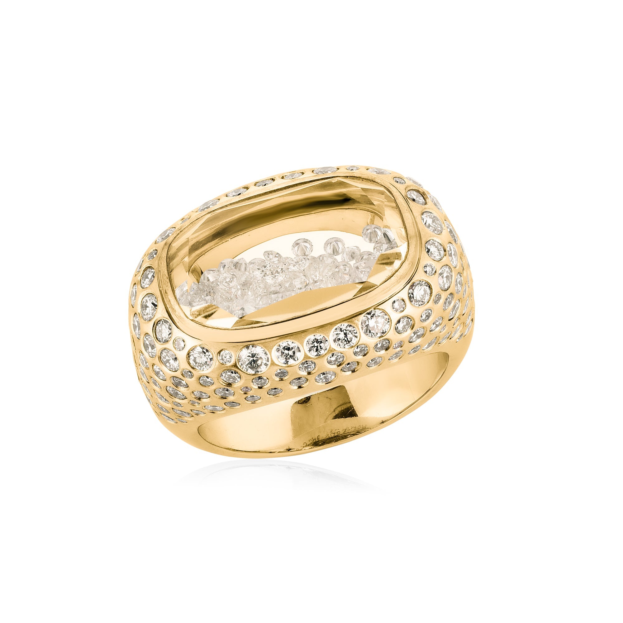 Ring with 3.46ct of diamonds set in and enclosed in a Kaleidoscope Shaker™ in 18-karat gold.