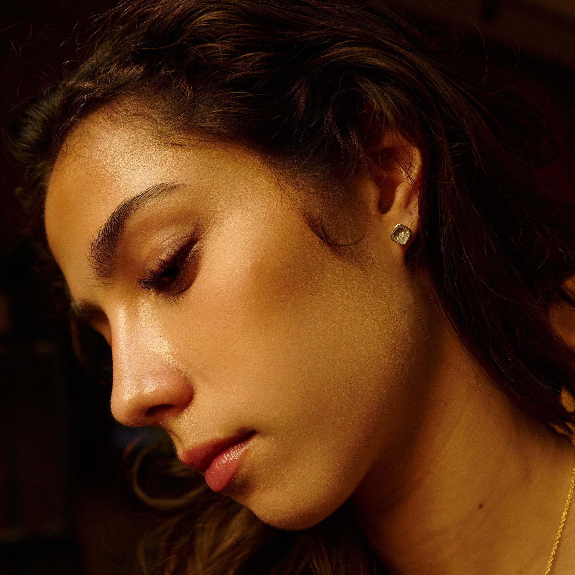 The Neue Cushion Stud Earrings feature our newly-tapered, cushion Kaleidoscope Shakers™, encasing loose, sparkling diamonds. The tapered design is a sleek update for a more prominent look at the stones inside. An every day look from afar, like a single stone stud, with a playful twist when looked upon closer. These earrings are water-resistant. To preserve this piece, consult the care instructions.