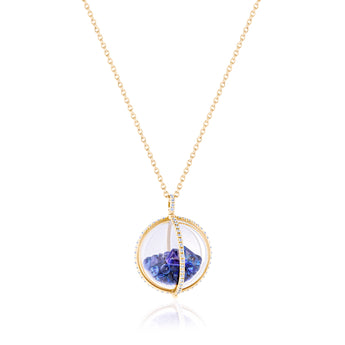 Necklace with 11.20 Blue sapphires, 3.47ct of tanzanite and 1.26ct of diamonds set in and enclosed in a Kaleidoscope Shaker™ in 18 karat gold.